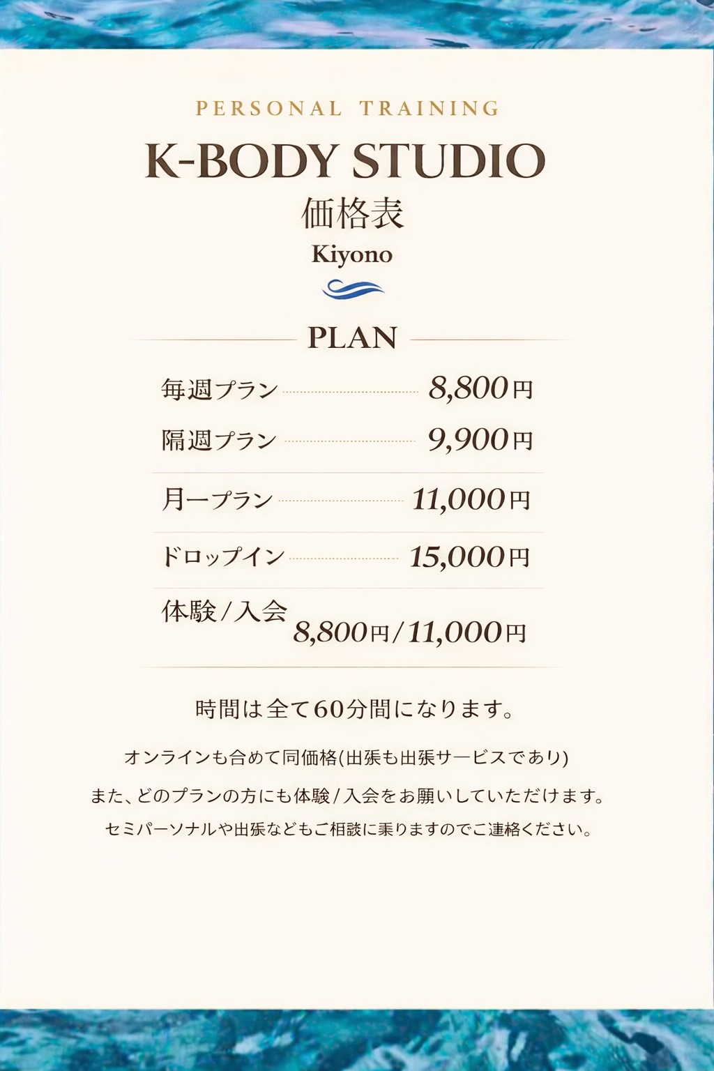 枠の空き状況はKiyonobody Instagramに定期的にアップしていきますので、そちらからご確認ください。